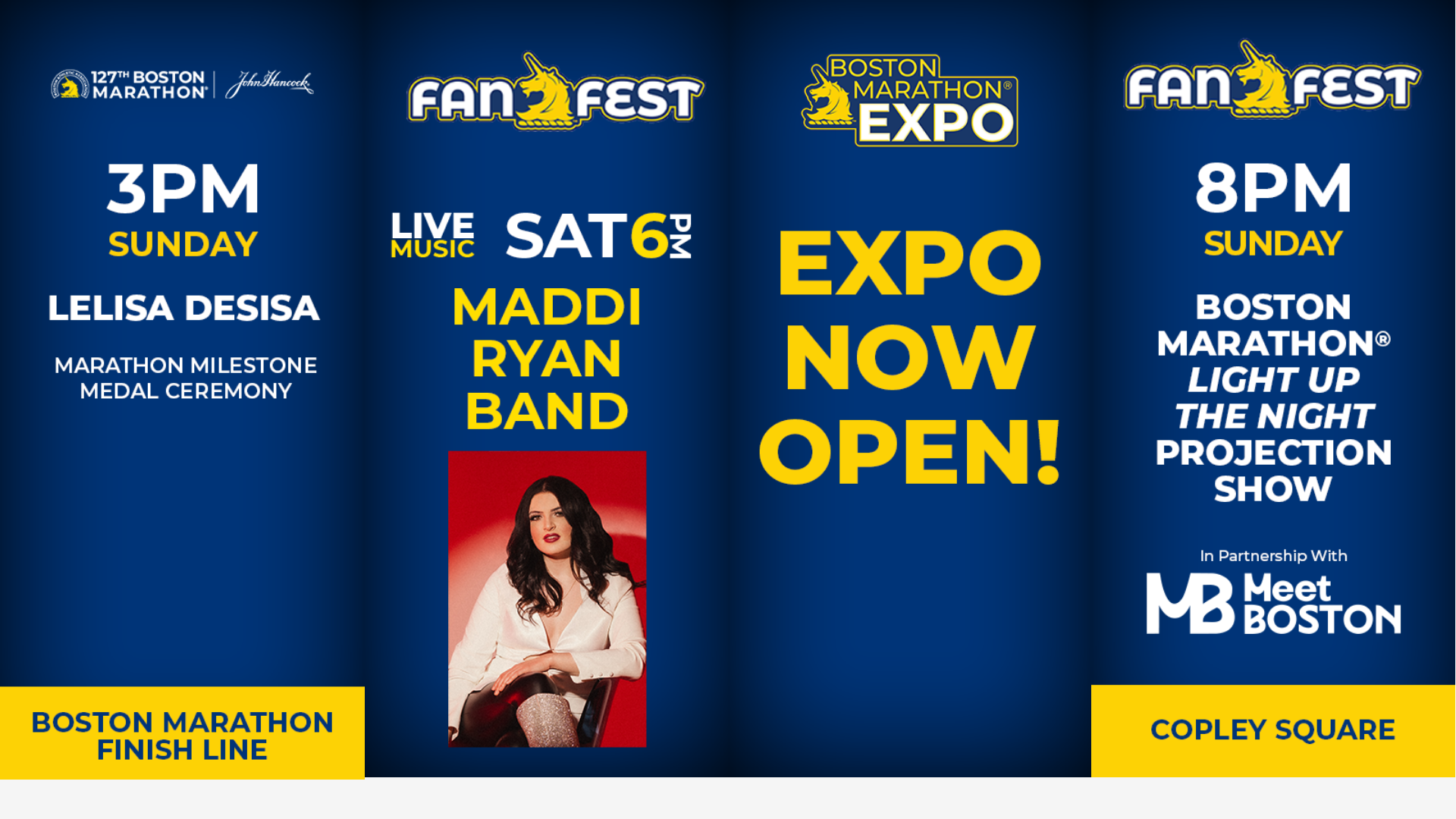 From the years of 2019-2020 I assisted in the design process for the Boston Marathon. For the years of 2021-2022 I became the project lead, assisting in the creation of nearly 200 deliverables across a variety of LED displays, information towers and the beloved finish line “Photobridge.”
